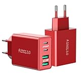 - USB-Ladegerät 4 Port: Der Lade-Stecker für USB-Ladekabel lädt als Multi-USB-Ladestation mehrere Geräte gleichzeitig mit Höchstgeschwindigkeit über die Steckdose, der Netzstecker für USB-Schnellladen blockiert keine weiteren Steckplätze
