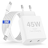 - 【45W USB-C Schnellladegerät】Das 45W USB-C Ladegerät kann über den USB-C Anschluss eine Ausgangsleistung von bis zu 45 W bereitstellen. Mit einem 45W Ladegerät können Sie Ihr iPhone 17/16/15 in nur 30 Minuten von 0% auf 50% aufladen. Und kompatibel mit allen USB C iPhone 17/17 Pro/17 Pro Max/17 Air/16/16 Pro/16 Pro Max/16 Plus, iPhone 15/15 Pro/15 Pro Max/15 Plus、Laptops. Höhere Ladeeffizienz, dadurch mehr Ldezeitersparnis.