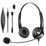 - ERGONOMISCHES DESIGN FÜR KOMFORT - 3,5mm Klinke/USB-C PC kopfhörer mit kabel verfügt über weiche Ohrpolster, einen drehbaren Mikrofonarm und einen verstellbaren Kopfbügel, der sich an die Bedürfnisse des Benutzers anpassen lässt. Das leichte und ergonomische Design sorgt dafür, dass Sie sich bei dauerhaftem Tragekomfort auf Ihr Gespräch konzentrieren können. Ideal für Call Center, Home Office, Büro, Online-Klasse, Videokonferenzen, Zoom Teams Skype Chat.