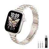 - 【Sicherheit und weibliche Eleganz vereint】Das versteckte Doppelsicherungssystem garantiert einen absolut sicheren Sitz während Pilates oder Joggen. Nahtloser Kompatibel mit allen 38mm/40mm/41mm/42mm/44mm/45mm/46mm/49mm Apple Watch Armband modellen, einschließlich Apple Watch Series 11/10/9/8/SE/7/6/5/4/3/2/1, Apple Watch Ultra 2, Apple Watch Ultra. Anpassungsbereich: 5 Zoll bis 7,67 Zoll(127mm -195mm"). Durch das werkzeuglose Druckknopfdesign können Sie das Armband sofort Ihrer Stimmung anpassen