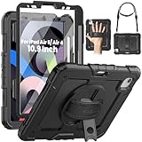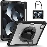 - 【360° Drehbarer Ständer & Handschlaufe】 Dieses iPad Air 5 Stoßfeste Hülle mit 360-Grad-drehbarem Ständer bietet Ihnen den komfortabelsten Mehrwinkel-Betrachtungs- und Schreibkomfort. Der verstellbare und abnehmbare Handschlaufe unterstützt Sie dabei, Ihr Tablet sicher mit einer Hand zu halten, das iPad kann flach sein, wenn der Handgelenkschlaufe entfernt wird.