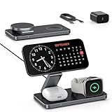 - 【3 in 1 Kabellose Ladestation mit Adapter】:Befestigen Sie Ihr iPhone nahtlos am mag-safe ladegerät und legen Sie Ihre Apple Watch auf das magnetische Uhr-Lademodul.Die starke magnetische Ausrichtung gewährleistet,dass Ihre Geräte präzise in der Mitte des drahtlosen Ladestation angebracht sind.Selbst mit geschlossenen Augen können Sie sofort das richtige Ladezentrum für Ihr Telefon ermitteln.Laden Sie Ihr iPhone während des Ladevorgangs mit diesem mag-safe ladegerät seitlich,es passt perfekt zum iOS 17 StandBy.