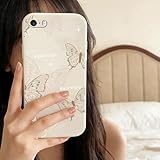 QIODAYI Kompatibel mit iPhone 5/5s/SE Creme-Olmalerei Pink-Silber-Schmetterling Silikon-Hülle