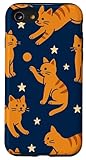 - Verfügt über ein kräftiges orangefarbenes getigertes Katzenmuster mit verspielten Posen vor einem tiefblauen Nachthimmel. Starker Kontrast und klare Formen schaffen einen sauberen visuellen Stil, ideal für alle, die ein orangefarbenes getigertes Katzen-Thema und einfache, ausdrucksstarke Kunstwerke lieben.
