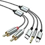 - 【3-in-1-Integration】 Im Vergleich zu herkömmlichen 1-zu-1-Cinch-Kabeln verwenden wir ein neues Technologieverfahren, das mehrere gängige Anschlüsse kombiniert und die Klangqualität während der Übertragung nicht beeinträchtigt. Dieses L-ightning auf Cinch-Kabel verfügt über L ightning-zu-Cinch- und USB-C-zu-Cinch-Anschlüsse sowie Cinch-zu-3,5-mm-Klinkenstecker und ist somit für eine Vielzahl von Audiogeräten geeignet, von modernen Smartphones bis hin zu herkömmlichen Heimkinosystemen. Hinweis: Das 3 in 1 klinke auf cinch dient nur zum Anschluss des Geräts, es verfügt nicht über eine Ladefunktion.