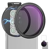 - 【Belichtungssteuerung mit variablem ND Filter】Durch einfaches Drehen lässt sich die Lichtreduzierung von ND2 bis ND32 (1 bis 5 Blendenstufen) für perfekt ausgewogene Beleuchtung einstellen. Halten Sie jeden wertvollen Moment mit großartiger Bewegungsunschärfe, lebensechten, lebendigen Farben und unbestrittener Schärfe fest. Der Verriegelungsknopf sorgt außerdem für minimalen Kontakt mit dem Bildschirm und optimalen Halt, sodass die Touchscreen Funktion des Telefons erhalten bleibt