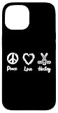 Hülle für iPhone 15 Peace Love Hockey Eishockey Fan