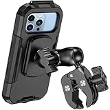 - 🏍【 Sicher & Langlebig & Anti-Vibration 】 Die Unterseite der smartphone halterung fahrrad ist mit stoßfestem Silikon überzogen und mit einer elastischen Basis ausgestattet, um zu verhindern, dass Ihr Telefon wackelt und zerkratzt. Der neu aktualisierte Aluminium-Befestigungsclip ist super sicher und das Verriegelungsdesign, das sicherstellt, dass Ihr Telefon auch auf einer holprigen Straße sicher an der handyhalter motorrad wasserdicht befestigt ist.