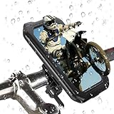 - 【Sensitive HD Touch Screen】Gebaut mit IPX6 wasserdichter Hülle, funktioniert der Touchscreen immer noch perfekt durch die Motorrad-Handyhülle! Derhochempfindliche Touchscreen dieser wasserdichten Fahrradhalterung ist kompatibel mit Face ID/Touch ID
