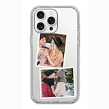 Personalisierbare, transparente Handyhülle, zwei Fotos und Text, für iPhone 17, 16, 15, 14, 13