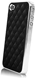 - DELUXE LEDER STEPPLEDER HÜLLE TASCHE für APPLE IPHONE 4 4G 4S LUXUS CHROME CASE HARDCASE ETUI HÜLLE SCHUTZHÜLLE COVER BUMPER SCHWARZ BLACK