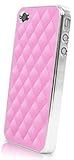 - LEDER STEPPLEDER DELUXE HÜLLE TASCHE für APPLE IPHONE 4 4G 4S LUXUS CHROME CASE HARDCASE ETUI HÜLLE SCHUTZHÜLLE COVER rosa rose