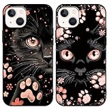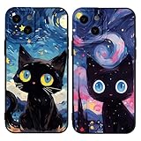 - Yimctoie 2 Stück Handyhülle für iPhone 14/iPhone 13 6,1",Cute Karikatur Katze Aesthetic Rosa Wolken Sternenhimmel Case,Anime Cat Cartoon Schutzhülle Schwarz Silikon TPU Hülle Stoßfeste Cover