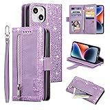 - 📱【KOMPATIBEL MODEL】 - Spezielles praktisches Design für iPhone 15 6.1 Zoll Handyhülle mit Geldbörse und Kartenfächern,Stoßfeste Ledertasche mit Reißverschluss Magnetverschluss Standfuntion