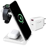 - Schnelles Laden mit Wireless Charger Technologie: Dank hochwertiger Ladechips und Premium-Komponenten gewährleistet diese induktive Ladestation ein sicheres und schnelles Laden. Mit dem mitgelieferten 18W-Adapter lädt die Station bis zu 30% schneller als herkömmliche kabellose Ladegeräte. Ihr iPhone, Ihre Apple Watch und Ihre AirPods sind in nur 2–3 Stunden vollständig aufgeladen.