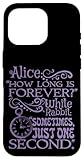 - Das hübsche Zitat lautet - Alice: "How long is forever?" Weißes Kaninchen: "Manchmal nur eine Sekunde." Der Text ist lila/lavendelfarben.