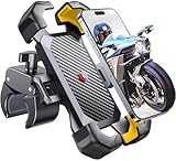 - [Handy wie ein Schraubstock Halten] Sowohl die klemme als auch die halterung sind zum schutz des telefons und des lenkers gepolstert. und die rückseite von motorrad handyhalterung verfügt über einen hochgeschwindigkeits-sperrschalter, der Ihr telefon doppelt sperren kann, wenn Sie auf einer holprigen straße fahren. Keine sorge, Ihr telefon wird locker vibrieren, wenn Sie 100 mph erreichen