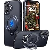 - [3-in-1 Vielseitiger Kickstand] Diese für iPhone 16 hülle vereint Ständer, Ringhalter und kabelloses Laden in einem! Nutzen Sie die Hülle im Querformat für Filme oder im Hochformat (unterstützt 90°-Vertikalmodus) für Timer-Fotos,Verstellbarkeit von 0 bis 180°. Der O-Ring dient als Fingerhalterung, um Ihr Telefon sicher zu greifen, wenn Ihre Hände voll sind. Gleichzeitig ermöglicht der Kickstand aus Zinklegierung schnelles und sicheres Laden, ohne die Hülle abzunehmen.