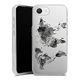 Silikon Hülle kompatibel mit Apple iPhone 6 Case schwarz Handyhülle Landkarte Holzoptik Weltkarte