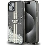 GUESS GUHCP15SLFCSEGK Hülle für iPhone 15/14 / 13 6.1"" Schwarz hardcase Liquid Glitter Gold Stripes