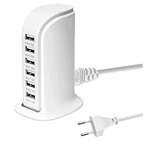 - 【Kompakt und Leicht】 Im Vergleich zu anderen klobigen Ladestationen misst der USB Ladestation nur 2,7 Zoll (ca. 6,86 cm) in der Breite und 4,3 Zoll (ca. 10,92 cm) – verfügt aber über die starke Leistung, gleichzeitig bis zu 6 Geräte aufzuladen. Passt ideal zu einem kleinen Schreibtisch, auf den Nachttisch oder in die Tasche für unterwegs!