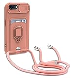 - yanasuo Verstellbarer Halskette Silikon Handyhülle mit Schiebekameraabdeckung und Ringständer Kartensteckplätzen für iPhone 6/6S/7/8/SE 2020