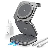 - 【Faltbares und tragbares kabelloses Ladegerät für Reisen und unterwegs】 Diese Apple-Ladestation ist faltbar, leicht und kompakt und passt mühelos in eine Tasche oder einen Koffer – ideal für den Gebrauch zu Hause, im Büro, auf Reisen oder bei Geschäftsreisen. Einmal zusammengeklappt ist die Wireless-Ladebasis nur halb so groß wie ein iPhone und spart so Platz. Im Lieferumfang ist außerdem eine Aufbewahrungsbox enthalten, die den Transport erleichtert. Verabschiede dich vom lästigen Mitführen mehrerer Ladegeräte!