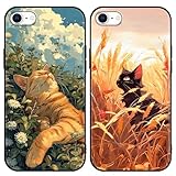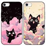 - Yimctoie 2 Stück Handyhülle für iPhone 7/8/SE 2020/SE 2022 4,7",Cute Karikatur Katze Aesthetic Rosa Wolken Sternenhimmel Case,Anime Cat Cartoon Schutzhülle Schwarz Silikon TPU Hülle Stoßfeste Cover