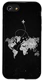 Schwarze Weltkarte Flugzeugtasche | Reise Abenteuer Handy Hülle für iPhone SE (2020) / 7 / 8