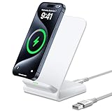 - 【VERTIKALES & HORIZONTALES LADEN】Dieses wireless charger iphone verfügt über einen breiten Ladebereich für mehr Flexibilität und einen stabilen, rutschfesten unteren Rand, der das Telefon an seinem Platz hält. Während des Ladevorgangs können Sie Ihr Telefon auch für Streaming, Videotelefonie oder zum Ansehen von Videos verwenden, ohne den Ladevorgang zu unterbrechen.