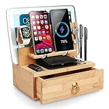 - 【 Organizer für mehrere Geräte 】: Umweltfreundlicher natürlicher Bambus-Ladestation kann bis zu 6 Geräte aufnehmen (wie compatible with iPhone AirPods Apple Watch Smartphones Samsung Galaxy Nexus & Tablets usw.) und hält gleichzeitig Ihre Geräte in Ordnung und hilft beim Aufräumen der stapelbaren Geräte.