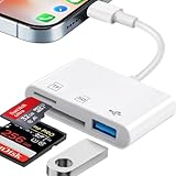 - SD Kartenleser für iPhone iPad: Dieser iPhone SD-Kartenadapter hat einen Steckplatz für SD-Karten, einen für microSD-Karten, zudem gibt es einen USB-A-Anschluss. Das SD Kartenleser iPhone ermöglicht es Ihnen, den Inhalt der SD-Karte in Ihrer Kamera direkt auf Ihr iPhone/iPad herunterzuladen, so dass Sie Ihre Videos oder Fotos mit Freunden und Familie überall und jederzeit teilen können. Dies ist eine optimale Wahl für das schnelle Kopieren von Fotos oder Videos von der Kamera auf Ihr iPhone/iPad.