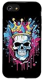 Graffiti-Totenkopf mit Krone und bunten Spritzern Hülle für iPhone SE (2020) / 7 / 8