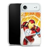 Silikon Hülle kompatibel mit Apple iPhone 16 e Case transparent Handyhülle Iron Man Marvel Feuer