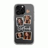 Clear Custom Case für iPhone 16 15 14 13 12 11 Pro Max XR X 8 7 SE mit vier Bildern + Text Design