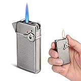 - 【Dual Flame und zwei Zündmodi】 Ein Sturmfeuerzeug mit zwei Zündmodi, wählen Sie Ihren bevorzugten Modus! Schieben Sie das Rad, um eine weiche Flamme (gelbe Flamme) zu erhalten, drücken Sie die Taste, um eine Jet-Flamme zu erhalten.