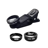 - 3 IN 1 KAMERAOBJEKTIVE - Mit diesem praktischen Kameraobjektivset hast du die Möglichkeit, Bilder mit Fischauge - , Weitwinkelobjektiv -, oder Makroobjektiv zu fotografieren. Schraube dafür die gewünschte Lens auf die Objektivklemme und platziere den Objektivadapter auf die Handylinse.