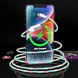 - 【light up charger cable for iphone】Colorful LED Light Up Flowing Lightning Charge Cord. The cable is white but when you power up, it become LED light up visible flowing lightning charger charging cord with led lights has a fashionable appearance and gorgeous light, it is with colorful visible flowing light not just one color light.The Glowing Light of this Lighted iPhone Charger Cable is very soft will not too bright to interrupt or distract you when driving and sleeping.