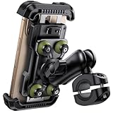 - 【Doppelte Stoßdämpfung & Professionelles Design】Lamicall Handy Motorrad Halterung bietet ultimativen Schutz für Ihr Handy & Kamera. Wenn Motorrad mit hohem Tempo fährt, können die vom Motor erzeugten hochfrequenten Vibrationen Handy irreversibel beschädigen. Diese Halterung verfügt über einzigartiges doppeltes Stoßdämpfungsdesign von Klavierfedern und Airbag-Silikon, das hochfrequente Vibrationen in niedrige umwandelt und so Schäden minimiert.