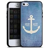 Silikon Hülle kompatibel mit Apple iPhone SE (2016-2019) Case schwarz Handyhülle Blau Anker maritim