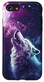 Wolf heult in Universum Galaxie Hülle für iPhone SE (2020) / 7 / 8