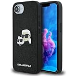 CG MOBILE Karl Lagerfeld Fixed Glitter Karl&Choupette Heads Metal Pin Hülle für iPhone 16e (Schwarz)