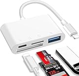- SD Kartenleser für iPhone iPad: Der iPhone SD-Kartenadapter ist kompatibel mit SD-, SDHC-, SDXC-, MicroSD-, MicroSDXC- und MicroSDHC-Speicherkarten. Der SD-Kartenleser unterstützt Standard-Fotoformate einschließlich JPEG, RAW und 4K-Videoformate einschließlich H.264 und MPEG-4.