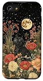 Schwarzer Mops, Mond, Blumen, Cottagecore Hund Mama Hülle für iPhone SE (2020) / 7 / 8