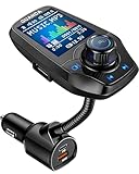 - Erweiterte 1,8 "digitale farbenfrohe LCD -Anzeige: Über unsere Bluetooth FM transmitters für Auto sind deutlich mehr Indikatoren zu sehen, z. Spielenstatus, Volumen usw. In der Zwischenzeit nimmt der FM transmitter adapter für Auto ein rotiertes 360-Grad-flexibler elegantes Schwanenhals-Design an.