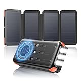 - 【4-in-1 Solarladegerät】Die Solar schnell aufladbare Powerbank mit 2× USB-A Ausgängen, 1× USB-C Eingang/Ausgang und einem drahtlosen Ladepad (15 W Max). Gleichzeitiges Aufladen von 4 Geräten möglich – komplett kabelunabhängig! Perfekt für unterwegs, ohne lästiges Kabelgewirr.