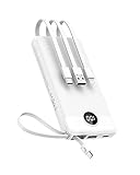 - 4 Integrierte Ladekabel: Eingebautes USB-C-, iPhone- und Micro-Kabel kompatibel mit iPhone 17/16/15/14/13/12/11/XR/8/6, iPad, Samsung Galaxy S25/S24/S23/S22, Xiaomi, Huawei, OnePlus usw. Die Powerbank kann direkt über das eingebaute USB-A-Kabel geladen werden. Keine Notwendigkeit, irgendwelche Ladekabel zu nehmen