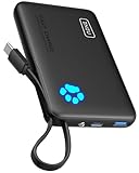 - Mitnehmen & Los, Keine Extra-Kabel: Diese 10000mAh Powerbank verfügt über ein integriertes USB-C-Kabel, das sowohl Ihr Telefon als auch die Powerbank auflädt und gleichzeitig als Trageband dient. Verlassen Sie das Haus ohne zusätzliche Kabel.