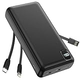 - 【Power Bank mit 3 Kabel & 5 Ausgänge】Integriertes Kabel für mehr Komfort und ohne zusätzliche Kabel. Das Powerbank mit dem integrierten USB C Kabeln, Andere Kabeln(kompatibel mit iphone), und Micro USB Kabeln, kein zusätzliches Kabel erforderlich. Diese mobile Stromversorgung ist sehr praktisch und enthält alle notwendigen Kabel. Die mobile Stromversorgung ist bequem für den täglichen Ladebedarf, tragbar und passt in Ihre Tasche für die tägliche Aufladung.