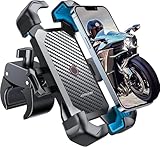 - 【Rundum stoßsicherer】Hochwertiges, geriffeltes Silikon an allen vier Ecken und auf der Rückseite der Handyhalterung umschließt Ihr Handy fest und sicher und schützt es vor Stößen und Kratzern. Ein Ein-Klick-Verschlussmechanismus auf der Rückseite sorgt für zusätzliche Sicherheit. Selbst bei einer wilden Fahrt bleibt Ihr Handy damit an Ort und Stelle.